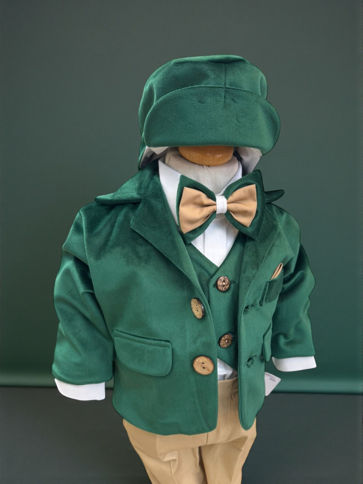 Costumul de botez Gabrielle Bebe din catifea verde este alegerea perfectă pentru părinții care doresc o ținută elegantă și confortabilă pentru micuțul lor. Această ținută va adăuga un plus de stil și va transforma botezul într-un moment memorabil.